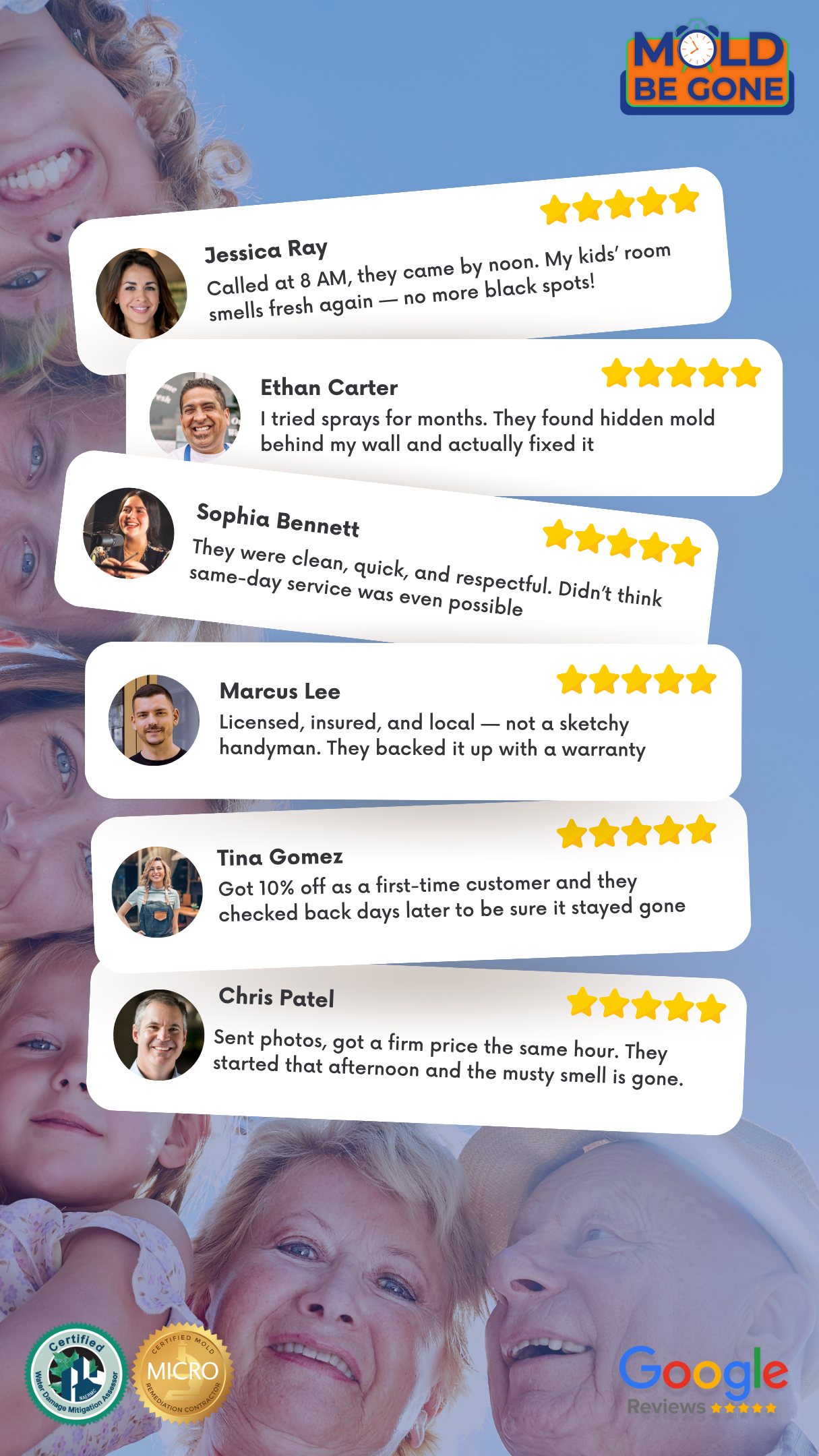 With Mold Be Gone, you get speed, certainty, and protection — every job guaranteed and warrantied